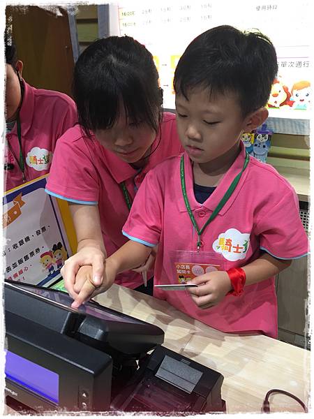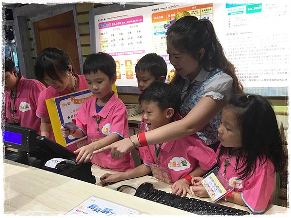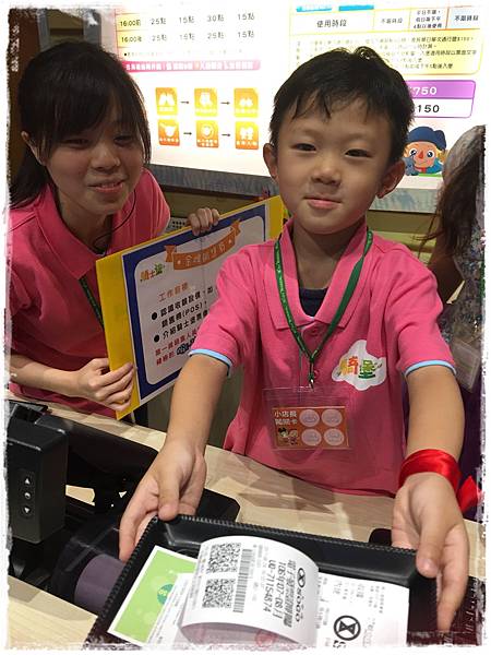 孩子們很認真的完成了小店長的工作,媽咪們決定等會加購票券讓他們入堡玩一小時
