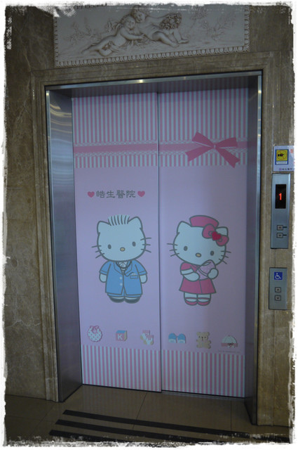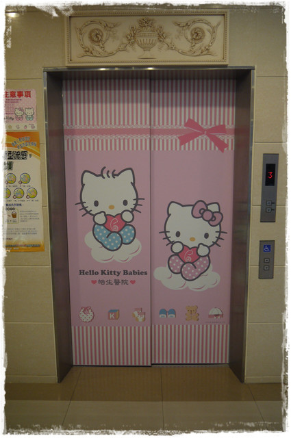 連電梯門都印上了Kitty 而且一樓與二樓圖案不同