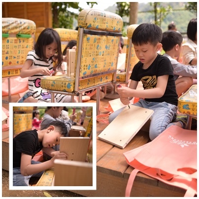 自己的椅子自己做!瞧孩子們組裝的頗認真呢