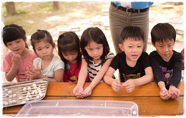 沒想到嘟寶說他有撿到一顆,因為雞看到一群小朋友衝過去,都嚇得跑走了 哈哈哈