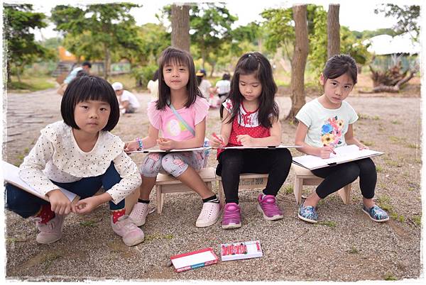 第二天在園區寫生,把所見的美景畫進圖裡,將旅行痕跡刻劃在他們小小的心靈裡