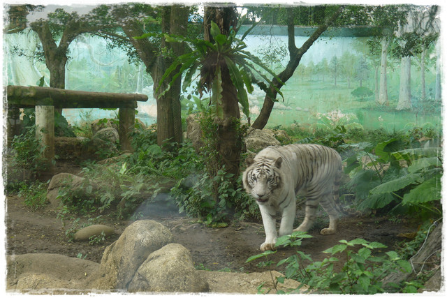 全身雪白、灰黑條紋,台灣大概只有六福村看的到這稀有的美麗吧