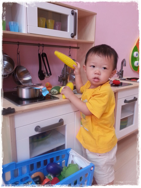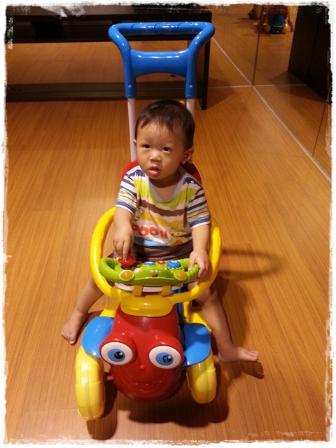 高度適中且會輪子可360度旋轉,嘟寶推的不亦樂乎哩