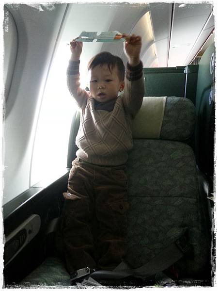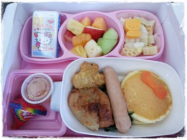 (這時,發現雄獅旅行社忘了幫嘟寶訂餐了,還好空姐說兒童餐有多一份,讚)