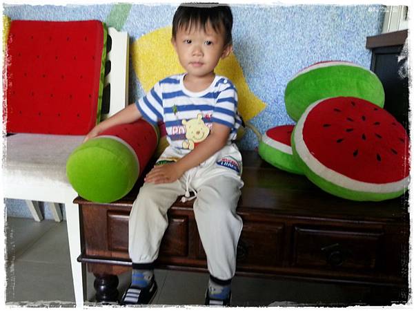 ◎看到西瓜裡的西瓜籽,很驚奇的告訴媽咪:西瓜下雨了