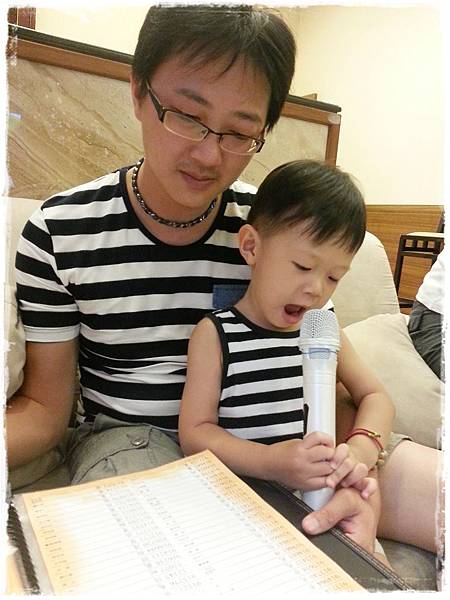 去大阿姨家唱KTV,第一次拿真的麥克風還有模有樣呢