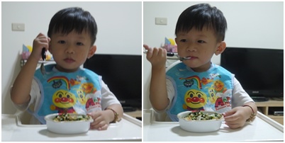 ◎嘟寶會自己吃飯飯囉~每ㄧ口都對的狠準咧