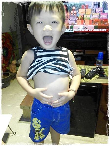 ◎把拔只是肚子上的肥肉多了一點,嘟寶就自創:把拔是控肉