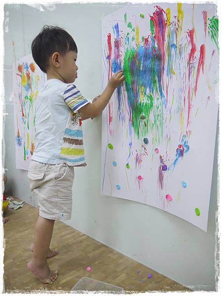 2歲的孩子喜歡畫直線,蓋蹦火花時不肯只安分的蓋印,都會硬拖個長尾巴下來~