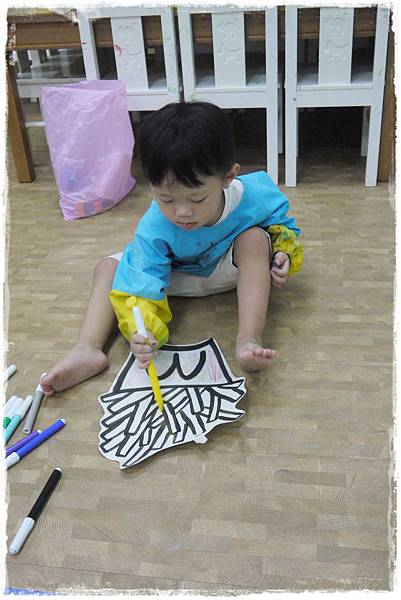 因為有聽老師的話,動作迅速的將手上的圖卡畫完黏在大紙上,