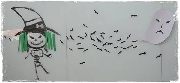 小朋友可到牆壁上抓兩隻蝙蝠貼到南瓜上,