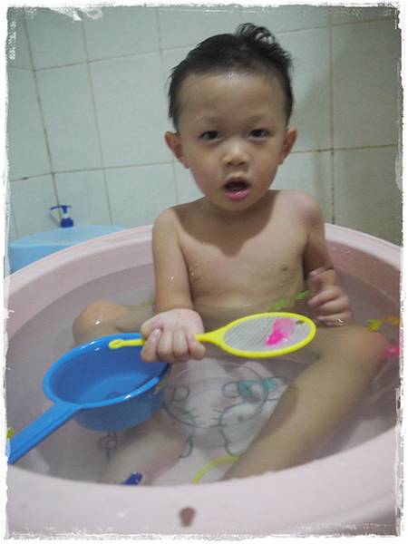 嘟寶會用左手撈魚,也會撥開浴盆裡的泡沫,只為了看的清楚,便利撈魚!!