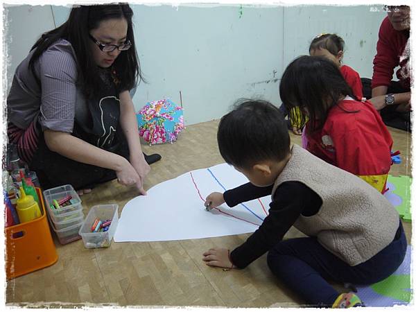 例如畫直線,會說:我要開車到阿祖家,嘟嘟~、我要開車去台北找大阿姨,嘟嘟~