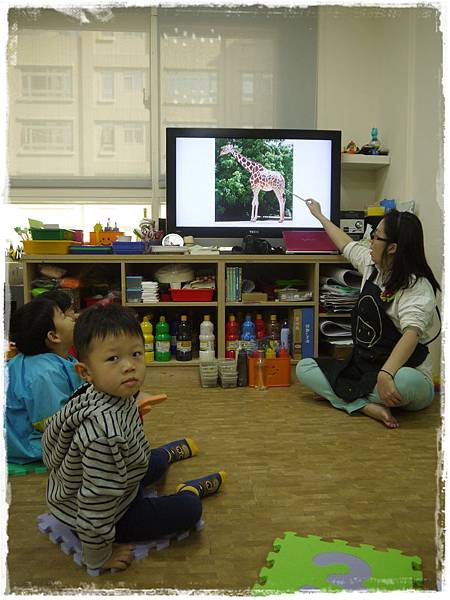 老師在圖畫紙上事先畫好長頸鹿的雛形