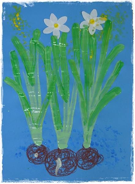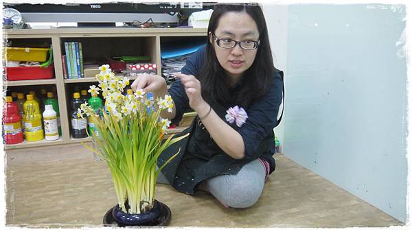 沒想到貼上水仙花後,整幅畫其實也挺美的耶~