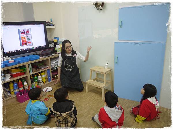 貼完後,圖片背面再沾白膠,黏在冷藏區的冰箱門邊,再把冰箱門關上