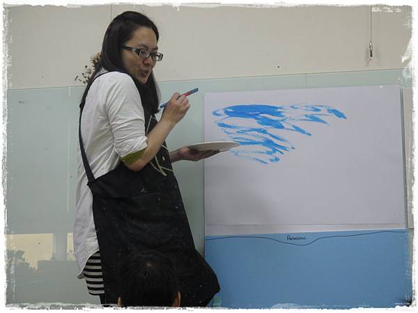 看的出他很捨不得,還一直問媽咪:下星期老師要教我們畫什麼呢?