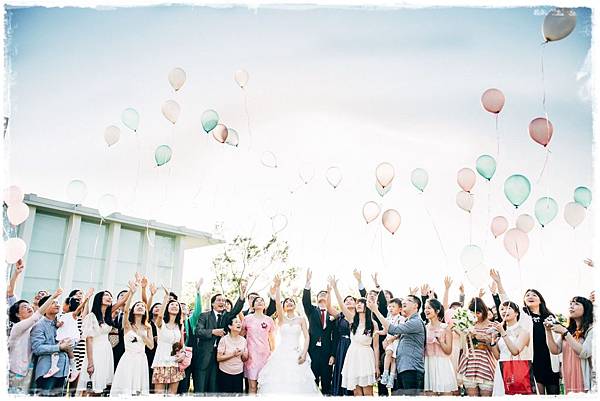 人人手上拉著心型氣球,一起施放,讓幸福飛揚滿天