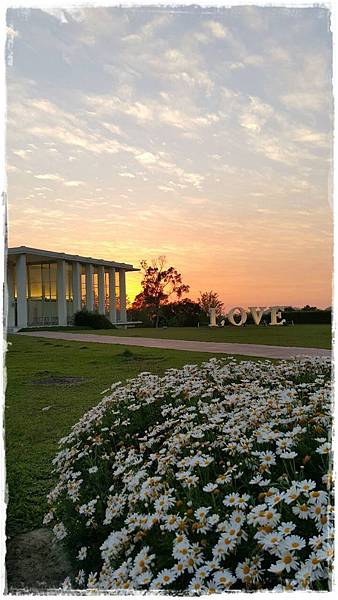 日暮時分的心之芳庭,橘紅的天空,好美~~