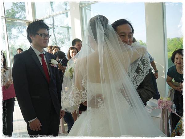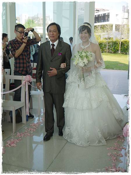 新娘由爸爸牽著進場,託付給新郎,