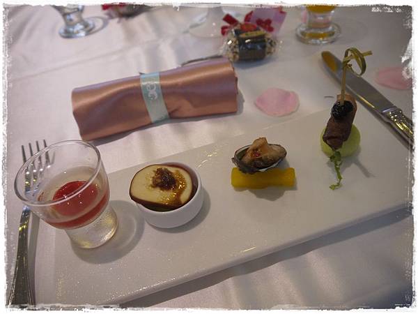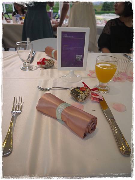 還有每個人的餐盤上都放著新人準備的婚禮小物-幸福米餅,