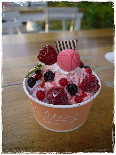 把拔也買了冰淇淋想先墊墊胃,我選的薰衣草口味,味道有點奇特!!!>”<