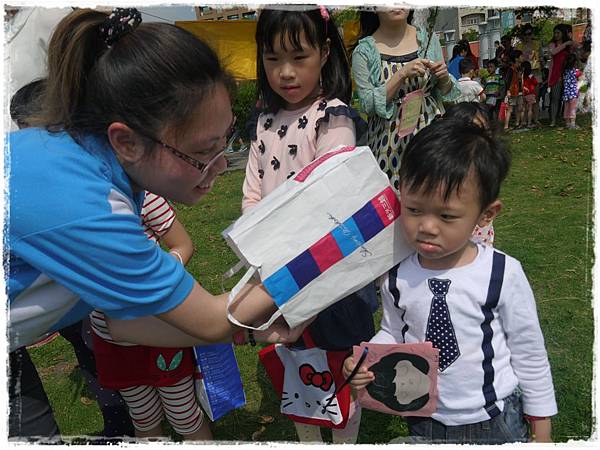 入口處先報到,領取孩子自己設計的提袋(裡面可放闖關完得到的禮品喔)