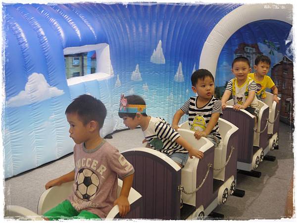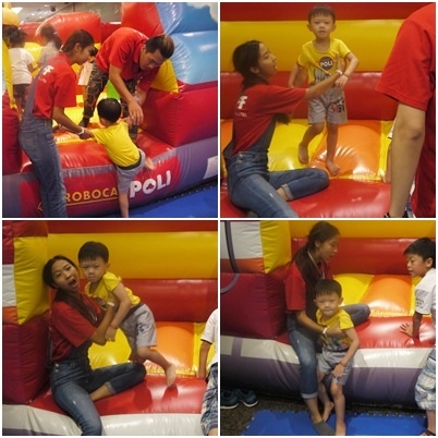 紅色羅伊的充氣式氣墊迷宮,小朋友可在裡面開心地跑跳,這關玩了兩次呢!!