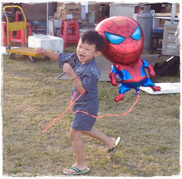 ◎為了讓嘟寶打扮成日式小童,拿了夾腳拖鞋讓他試試,沒想到竟然穿的很穩很好耶