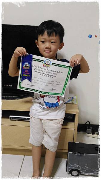 老師說嘟寶英文發音很標準,英文能力不錯,還領模範生獎章獎狀回來唷~