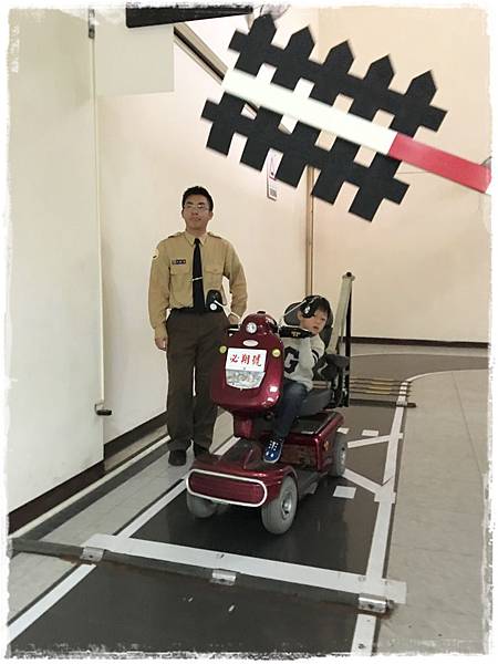 替代役哥哥會先講解電動車的駕駛方式及說明該如何通過設置的考照關卡
