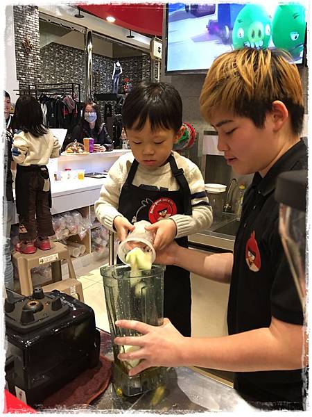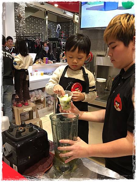 把拔點了蜂蜜芭樂汁,初體驗手作飲料,竟差點直接用手拿起新鮮芭樂,丟入果汁機內(昏)