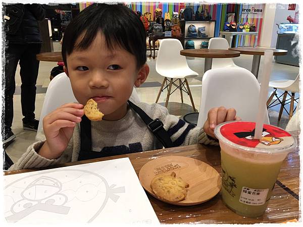 天氣冷,現打飲料有點冰,結果嘟寶只愛吃店員烤的餅乾XD