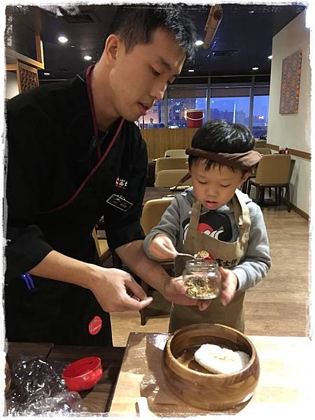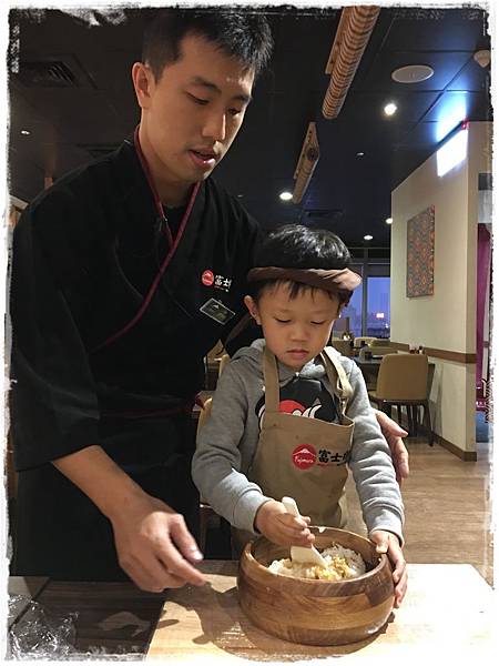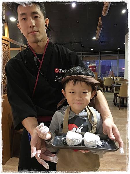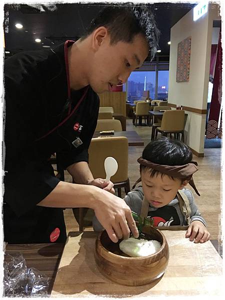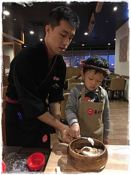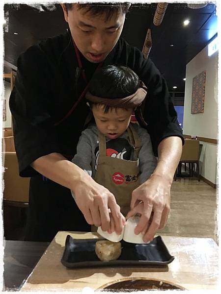 有別於專業的廚師扮相,反倒有股日式帥氣風的FU呢~