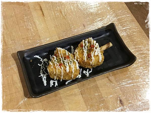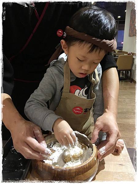 大哥哥會幫忙將飯糰炸成金黃色,再擺盤裝飾好,嘟寶的手作飯糰就完成囉