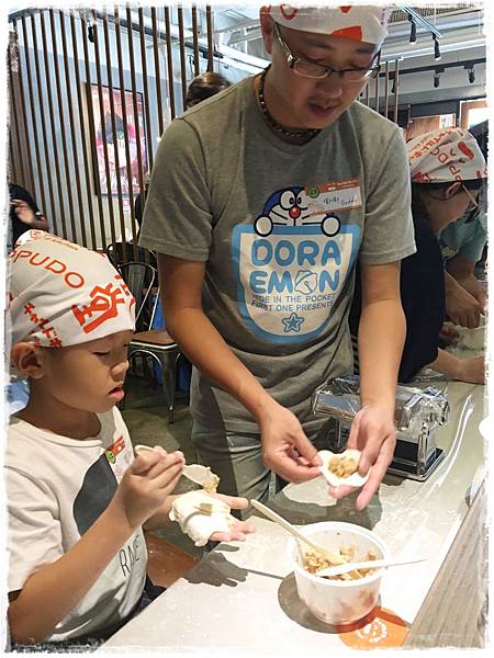 再來就是要包餃子啦,餡料可以自己決定要包多少,嘟寶每一顆都塞的滿滿的咧~