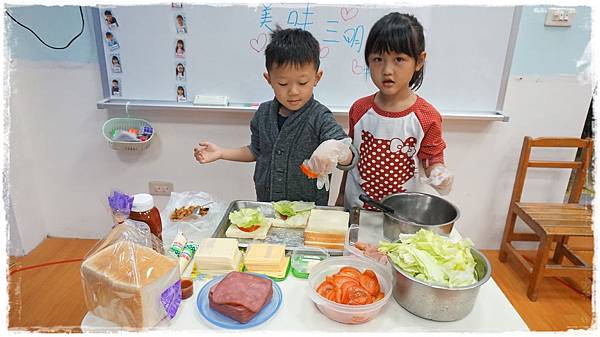 嘟寶在學校開心的做飯糰、地瓜金元寶、三明治、手工起司醬、果凍....