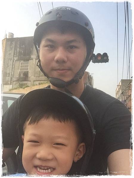媽咪想測試他的穩定度,就借了兒童安全帽,帶他出去溜達