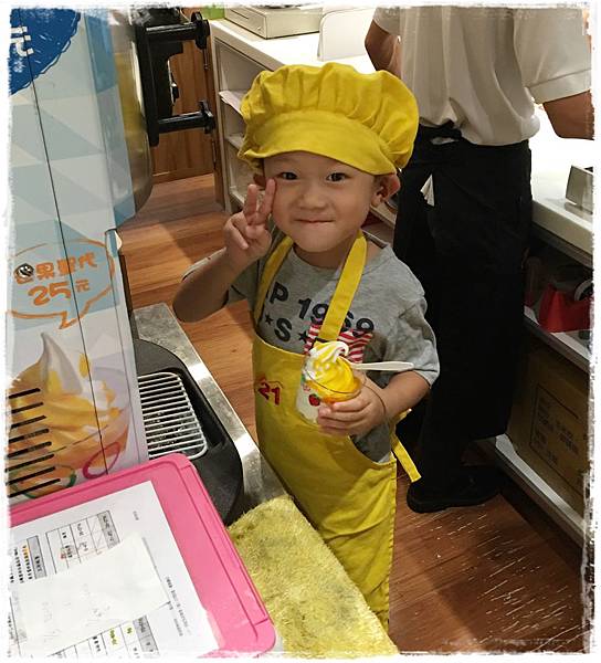 (嘟寶murmur: 我不愛吃冰,跟我笑容一樣甜的聖代,是要給辛苦陪我來工作的把拔吃喔)