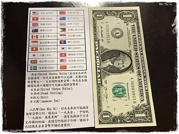 領紅包囉,裡面竟是1元美金新鈔耶~