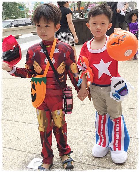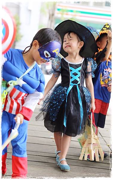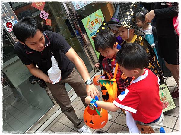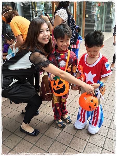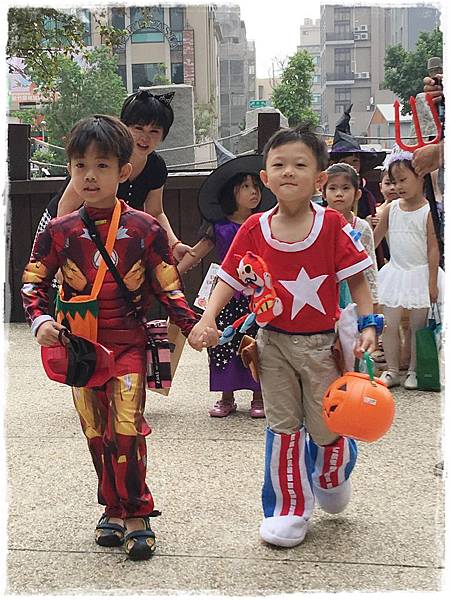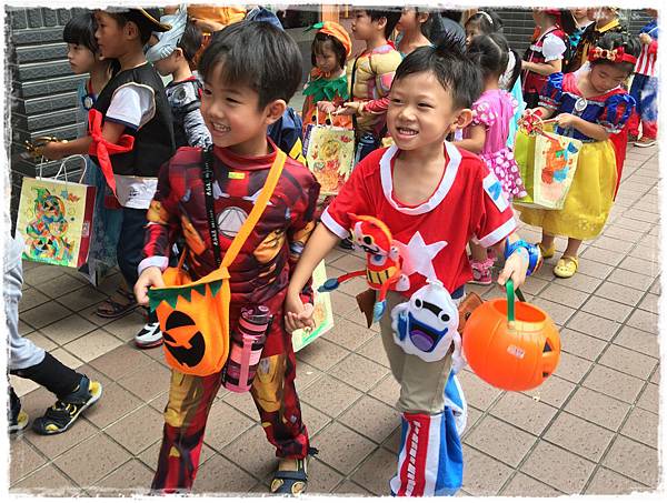 開心的去踩街囉,孩子們邊走邊唱英文歌討糖,太療癒了