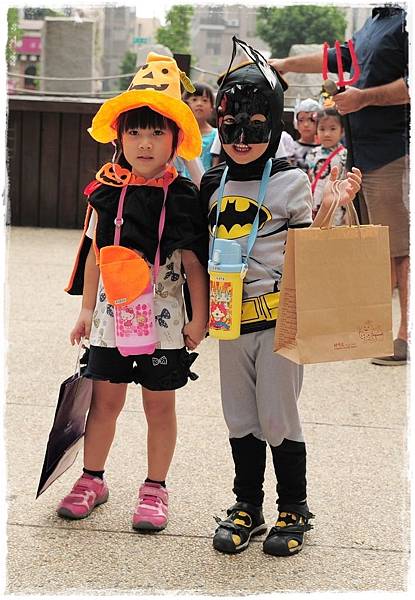萬聖節,把拔馬麻樂在打扮造型,孩子樂在拿糖果數糖果吃糖果XD