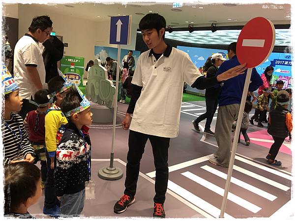 紅燈停、綠燈行,讓孩子依照大螢幕的亮燈指示繞一圈回到原位