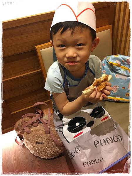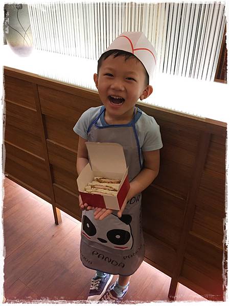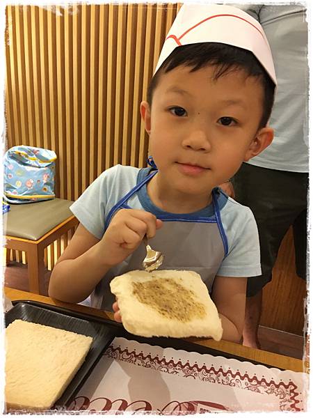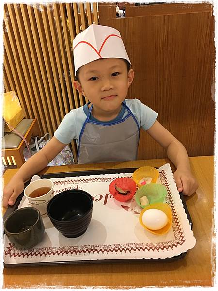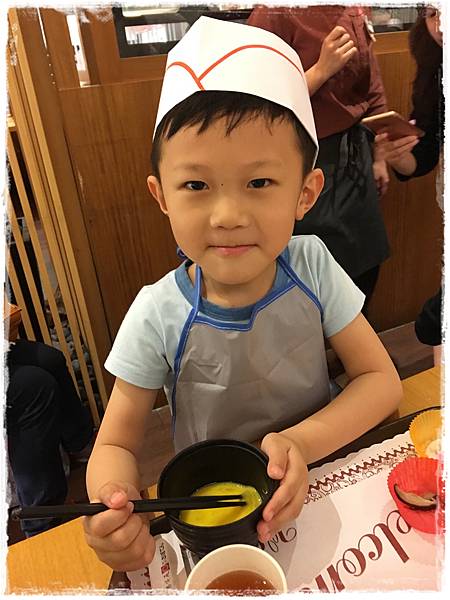 其實小廚師是穿圍裙的,但我們特地又借了勝博殿的制服來讓孩子們拍照