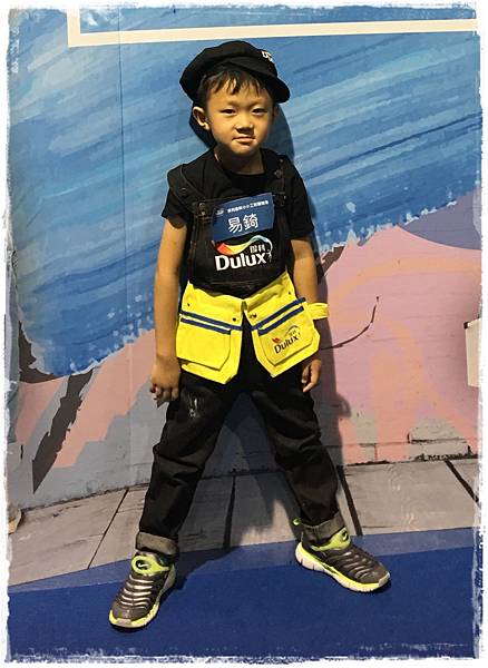 報到後穿上小工班制服,超可愛的吊帶褲配上工具包和帽子