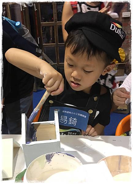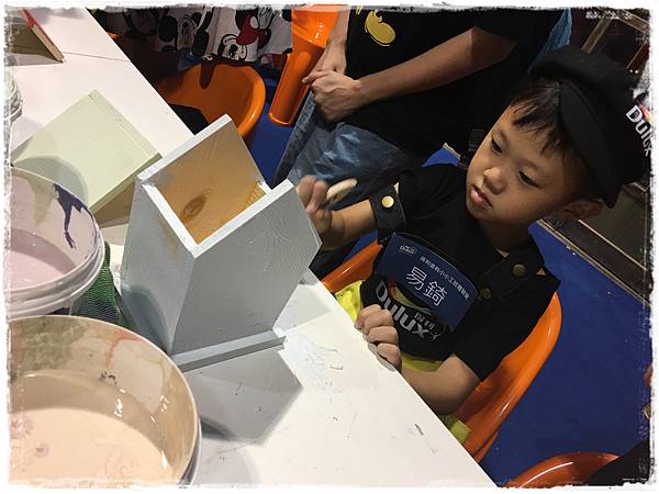 嘟寶很專注的繪著自己的作品,細微處的塗刷也漸漸上手
