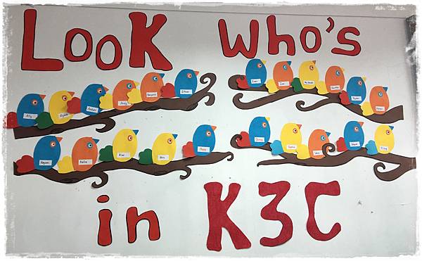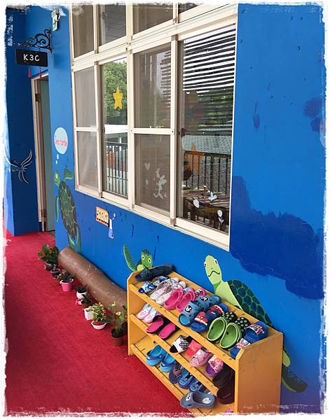 K3的教室在二樓,外牆是繽紛的海洋世界,裡頭佈置的是班上的大小事