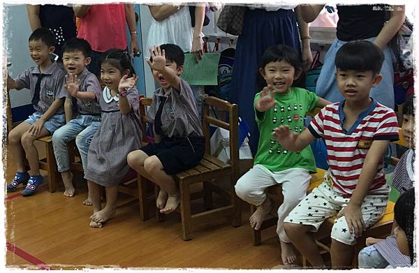 課堂開始,小寶貝們都漾著笑臉的跟家長們打招呼