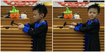 感謝士林地方法院提供法袍,讓孩子拿起法槌模擬庭審,感受法庭審判的嚴肅與莊重!!