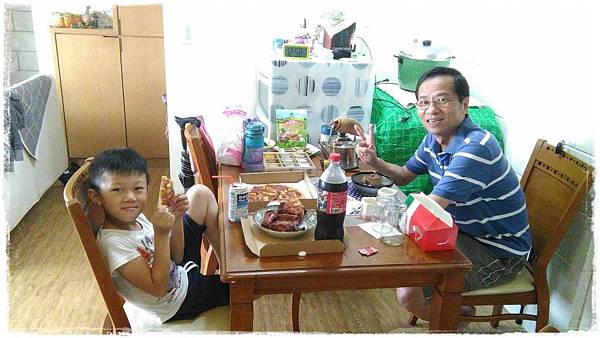 外公特別買了PIZZA,慶祝嘟寶住台中圓滿成功,